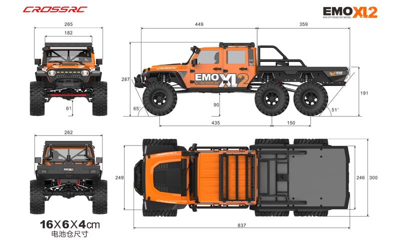 מכונית זחלן סלעים – CROSS RC EMO XL2 6X6 1/7 ARTR אפור