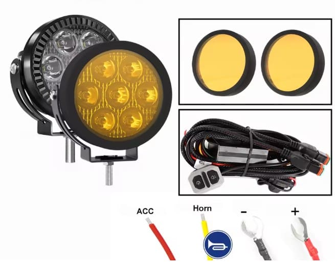 סט פנסי ערפל , תאורה לד עוצמתי עם צמת חשמל לאופנועים כולל עם מתג שליטה שינוי מצבים ומתאמים .