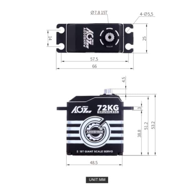 Stall Torque: 64 kg-cm (889 oz-in) @ 7.4V